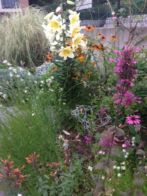 百合が今年は大きくさいて、お客様を楽しませてくれています。